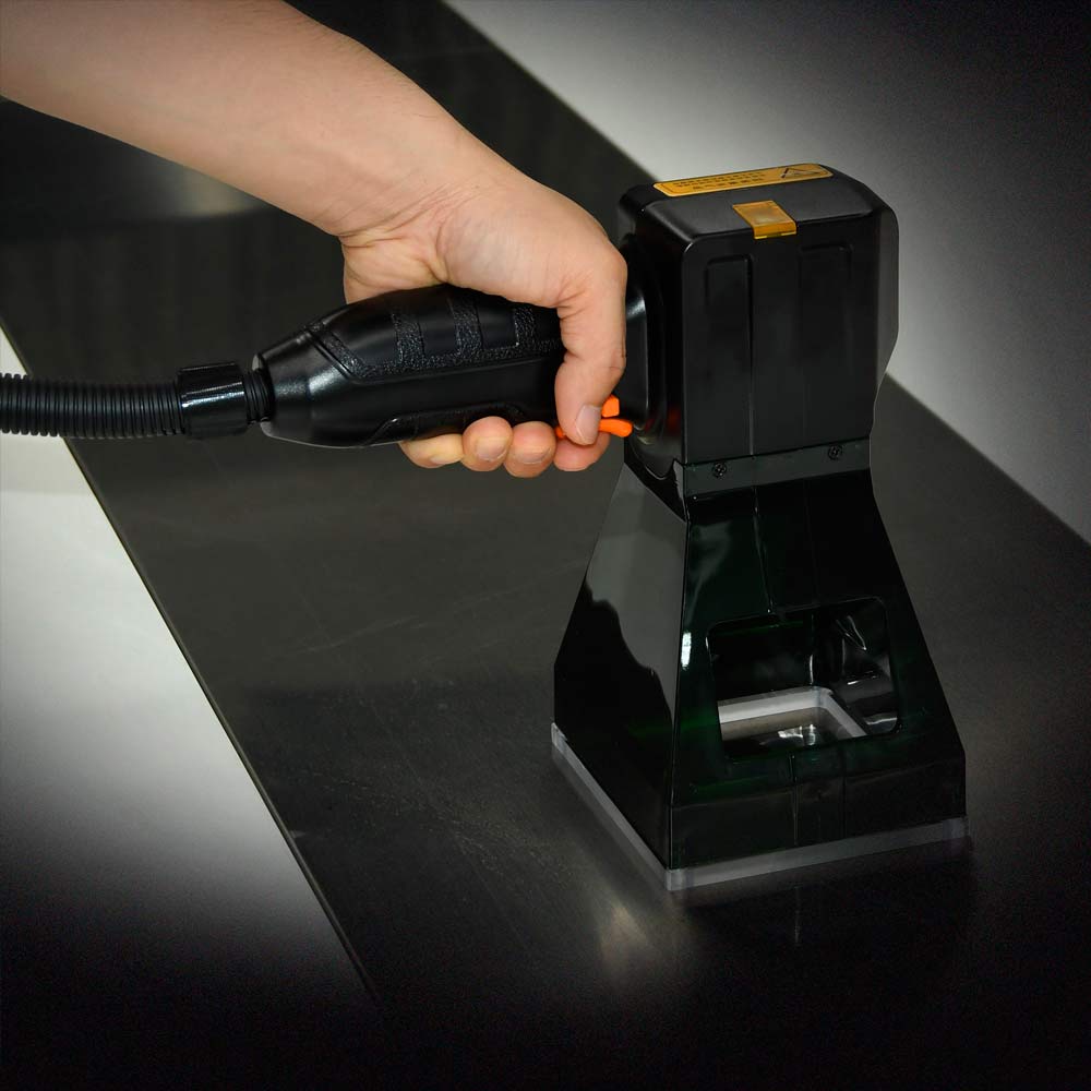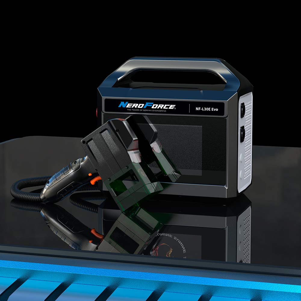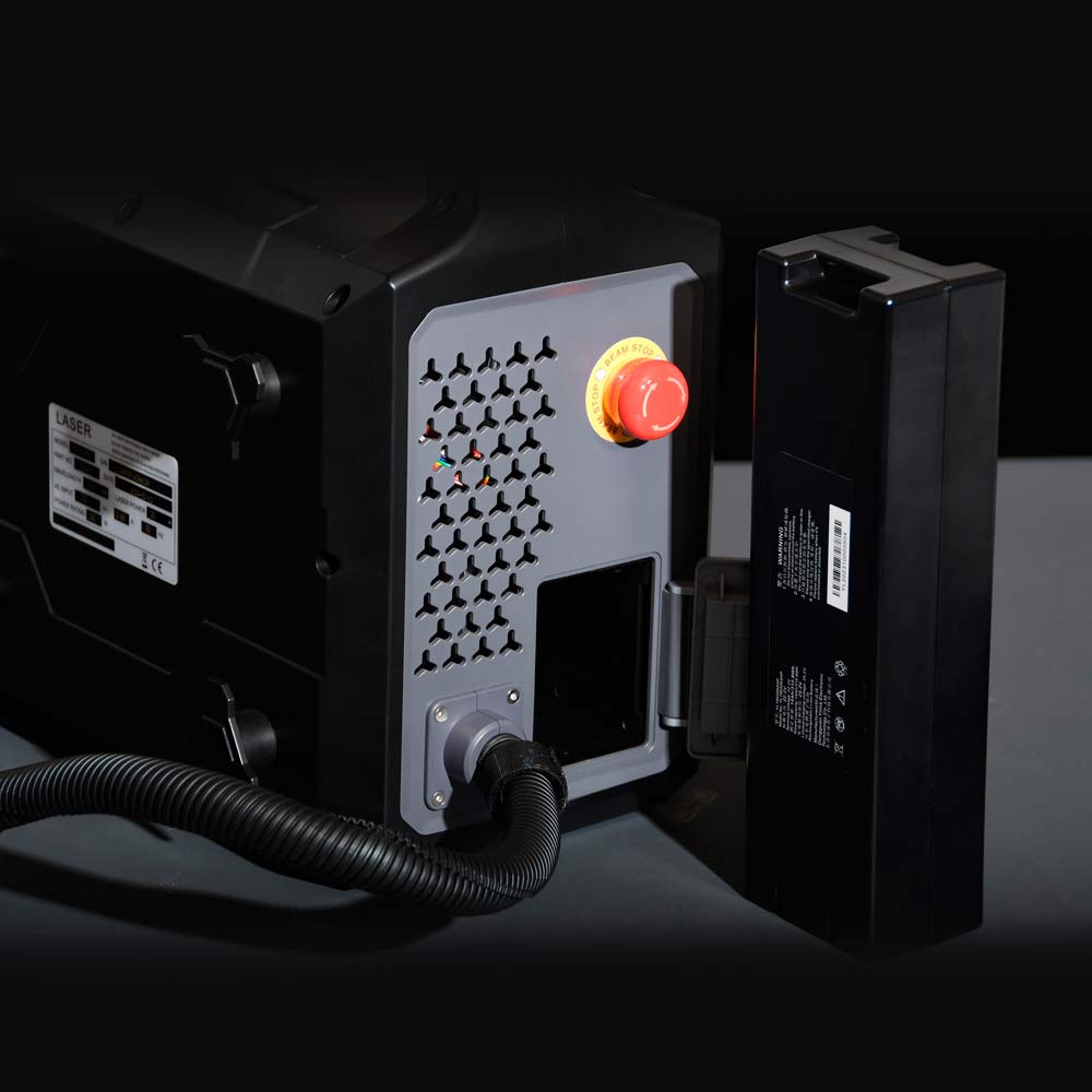 In der 2023 Version unserer Handlaser mit Akku ist dieser ab sofort über ein Steckfach leicht wechselbar.