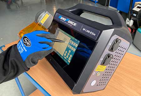 In der 2023 Version unserer Handlaser mit Akku ist dieser ab sofort über ein Steckfach leicht wechselbar.