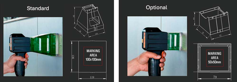 - Markierungsbereich: 100 × 100 mm oder 50 × 50 mm